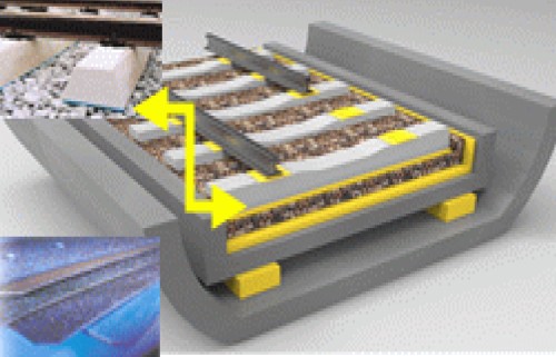 침목하단에 부착되어 궤도수명을 연장시키고 소음, 진동을 효과적으로 저감시키는 자갈궤도용 침목패드
